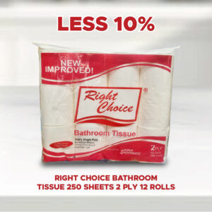 RIGHT CHOICE BATHROOM TISSUE 250 SHEETS 2 PLY 12 ROLLS LESS 10%