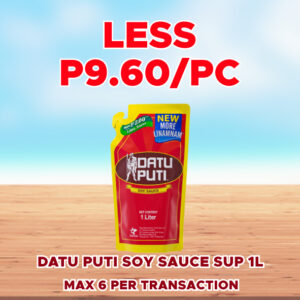 DATU PUTI SOY SAUCE SUP 1L LESS P9.60/PC