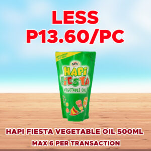 HAPI FIESTA VEGETABLE OIL 500ML LESS P13.60/PC