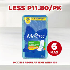 MODESS REGULAR NON WING 12S LESS P11.80/PK