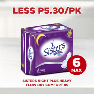 SISTERS NIGHT PLUS HEAVY FLOW DRY COMFORT 8S LESS P5.30/PK