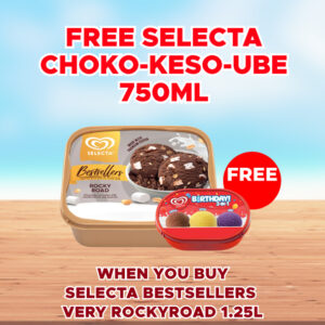 SELECTA BESTSELLERS VERY ROCKYROAD 1.25L FREE SELECTA 3N1 CHOKO-KESO-UBE 750ML