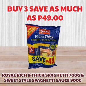 • Royal Rich & Thick Spaghetti 700g & Sweet Style Spaghetti Sauce 900g Save as much as P49.00