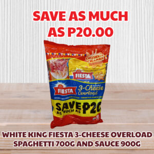 • White King Fiesta 3-Cheese Overload Spaghetti 700g and Sauce 900g Save as much as P20.00