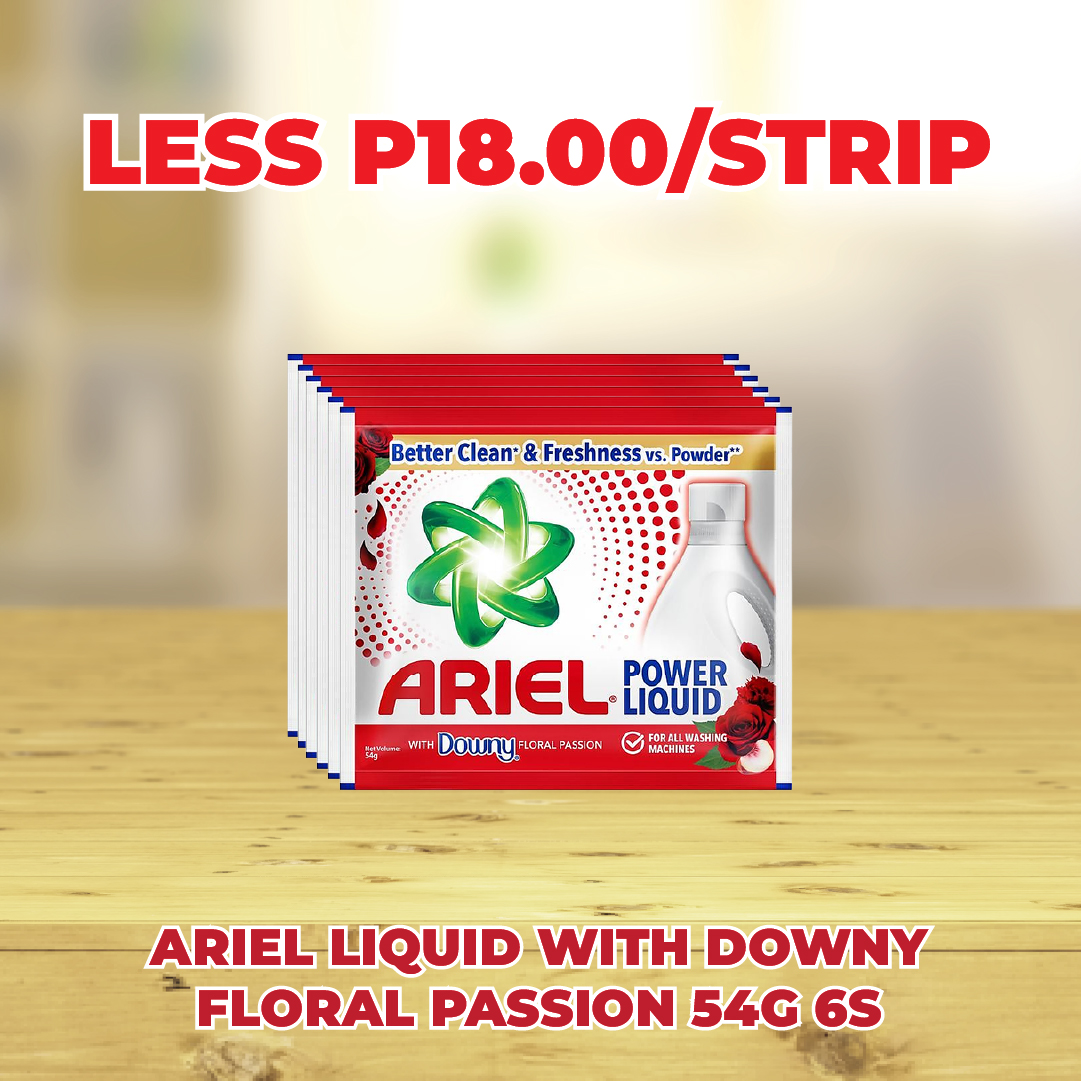 Sale! ARIEL LIQUID WITH DOWNY FLORAL PASSION 54G 6S LESS P18.00/STRIP This product will be available on 2026-04-30 ₱90.00 ₱72.00 SKU: S-4902430764902 Categories: 1-DAY SALE, SAVE UP TO P72.00 Related products Sale! ARIEL SUNRISE FRESH POWDER 66G 6S LESS P18.00/STRIP Available on 2026-04-30 ₱90.00 ₱72.00 Read more Sale! SURF BAR ACTIVE CLEAN BLOSSOM FRESH 360G LESS P5.70/PC Available on 2026-04-30 ₱28.50 ₱22.80 Read more Sale! PANTENE CONDITIONER BIOTIN HAIR FALL CONTROL 150ML LESS P50.00/PC Available on 2026-04-30 ₱166.00 ₱116.00 Read more Sale! SAFEGUARD PURE WHITE 115G 3S LESS P42.00/PC Available on 2026-04-30 ₱141.00 ₱99.00 Read more