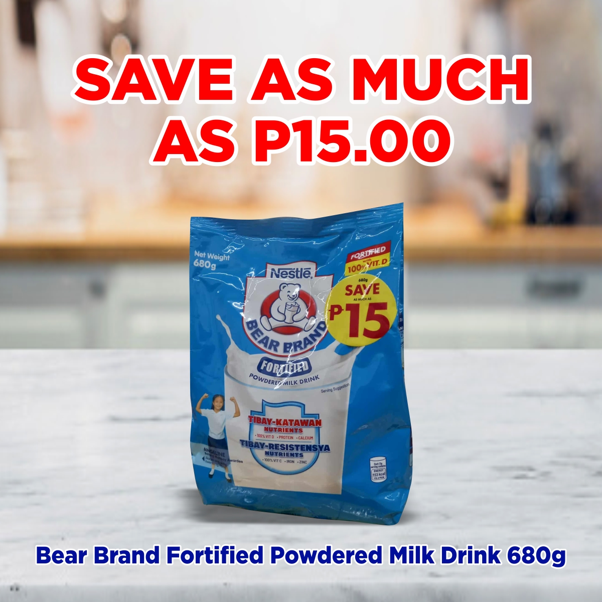 Bear Brand Fortified Powdered Milk Drink 680g Save as much as P15.00₱234.00 10 in stock - Bear Brand Fortified Powdered Milk Drink 680g Save as much as P15.00 quantity + Add to cart SKU: 405148 Category: Value Plus Related products Palmolive Naturals Silky Straight Olive Oil & Keratin 180ml Get 2nd Bottle at 50% off ₱186.00 Add to cart Tender Love Scented Baby Wipes 80s Buy 3 Take 1 Free ₱126.00 Add to cart Cheetos Cheddar Jalapeño 215g and Crunchy 215g Buy 2 Save P40.00 ₱269.00 Add to cart Mang Tipid Antibac 850ml 2 for P89.00 ₱89.00 Add to cart