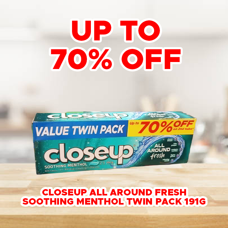 Closeup All Around Fresh Soothing Menthol Twin Pack 191g Up to 70% Off₱178.50 15 in stock - Closeup All Around Fresh Soothing Menthol Twin Pack 191g Up to 70% Off quantity + Add to cart SKU: 8934839125790 Category: Value Plus Related products Joy Antibac 36ml Buy 6 Get 1 Free ₱71.00 Add to cart Goya Cream White Chocolate 30g 2+1 ₱47.00 Add to cart Cheetos Cheddar Jalapeño 215g and Crunchy 215g Buy 2 Save P40.00 ₱269.00 Add to cart Mang Tipid Antibac 500ml 2 for P69.00 ₱69.00 Add to cart