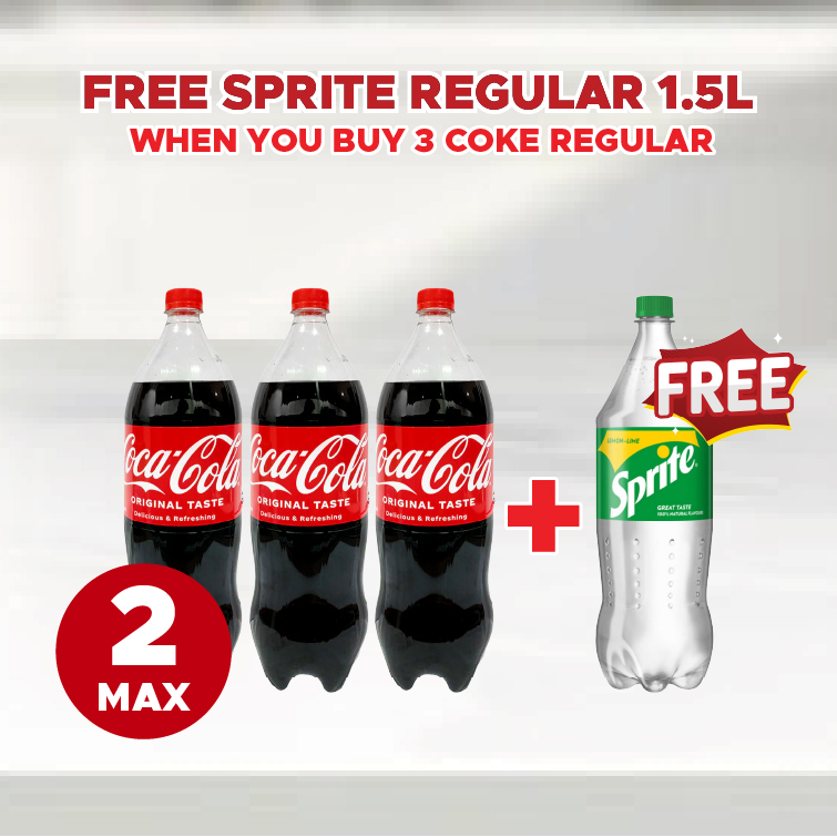 Sale! COKE REGULAR 1.5L 3S FREE SPRITE 1.5L This product will be available on 2026-04-30 ₱260.00 ₱195.00 SKU: S-406828 Categories: 1-DAY SALE, WITH FREE ITEM Related products Sale! SURF BAR ACTIVE CLEAN KALAMANSI 360G LESS P4.50/PC Available on 2026-04-30 ₱22.50 ₱18.00 Read more Sale! SURF POWDER ACTIVE CLEAN SUN FRESH 65G 6S LESS P8.10/STRIP Available on 2026-04-30 ₱40.50 ₱32.40 Read more Sale! ARIEL LIQUID WITH DOWNY FLORAL PASSION 54G 6S LESS P18.00/STRIP Available on 2026-04-30 ₱90.00 ₱72.00 Read more Sale! HEAD & SHOULDER SHAMPOO COOL MENTHOL 12ML 6S LESS P8.90/STRIP Available on 2026-04-30 ₱44.40 ₱35.50 Read more