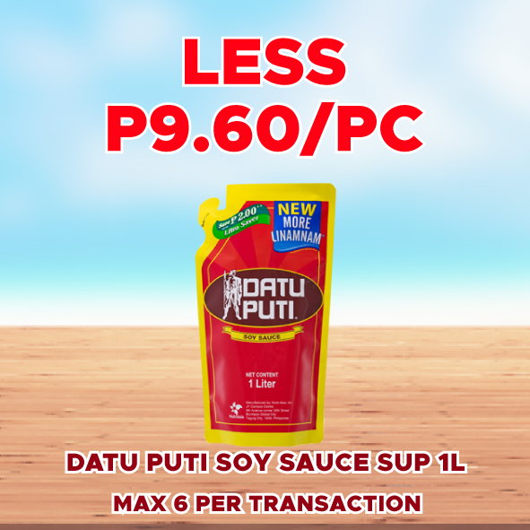 Sale! DATU PUTI SOY SAUCE SUP 1L LESS P9.60/PC This product will be available on 2026-04-30 ₱48.00 ₱38.40 SKU: S-4801668603628 Categories: 1-DAY SALE, SAVE UP TO P72.00 Related products Sale! SURF BAR ACTIVE CLEAN KALAMANSI 360G LESS P4.50/PC Available on 2026-04-30 ₱22.50 ₱18.00 Read more Sale! SURF BAR ACTIVE CLEAN CHERRY BLOSSOM 360G LESS P5.70/PC Available on 2026-04-30 ₱28.50 ₱22.80 Read more Sale! JOY DISHWASHING LIQUID LEMON 140ML LESS P12.00/PC Available on 2026-04-30 ₱43.50 ₱31.50 Read more Sale! CREAM SILK KERATIN REBOND STRAIGHT 18ML 6S LESS P8.40/STRIP Available on 2026-04-30 ₱42.00 ₱33.60 Read more