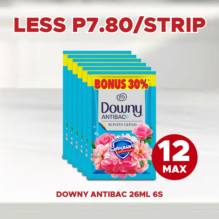 Sale! DOWNY ANTIBAC 26ML 6S LESS P7.80/STRIP This product will be available on 2026-04-30 ₱39.00 ₱31.20 SKU: S-4902430344876 Categories: 1-DAY SALE, SAVE UP TO P72.00 Related products Sale! LUCKY 7 CARNE NORTE 210G LESS P5.85/PC Available on 2026-04-30 ₱29.25 ₱23.40 Read more Sale! SAFEGUARD PURE WHITE 115G 3S LESS P42.00/PC Available on 2026-04-30 ₱141.00 ₱99.00 Read more Sale! SHIELD BATH SOAP PINK 55G LESS P3.00/PC Available on 2026-04-30 ₱14.00 ₱11.00 Read more Sale! SURF BAR ACTIVE CLEAN CHERRY BLOSSOM 360G LESS P5.70/PC Available on 2026-04-30 ₱28.50 ₱22.80 Read more