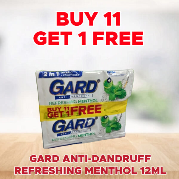 Gard Anti-Dandruff Refreshing Menthol 12ml Buy 11, Get 1 Free₱59.00 29 in stock - Gard Anti-Dandruff Refreshing Menthol 12ml Buy 11, Get 1 Free quantity + Add to cart SKU: 4808888004853 Category: Value Plus Related products Head & Shoulders Smooth & Silky 12ml Buy 11 Get 1 Free ₱77.00 Add to cart Palmolive Naturals Intensive Moisture Coconut Cream 180ml Get 2nd Bottle at 50% off ₱186.00 Add to cart Tide Perfect Clean Original 69g 6+1 ₱88.00 Add to cart Tide Downy Garden Bloom 67g 6+1 ₱88.00 Add to cart