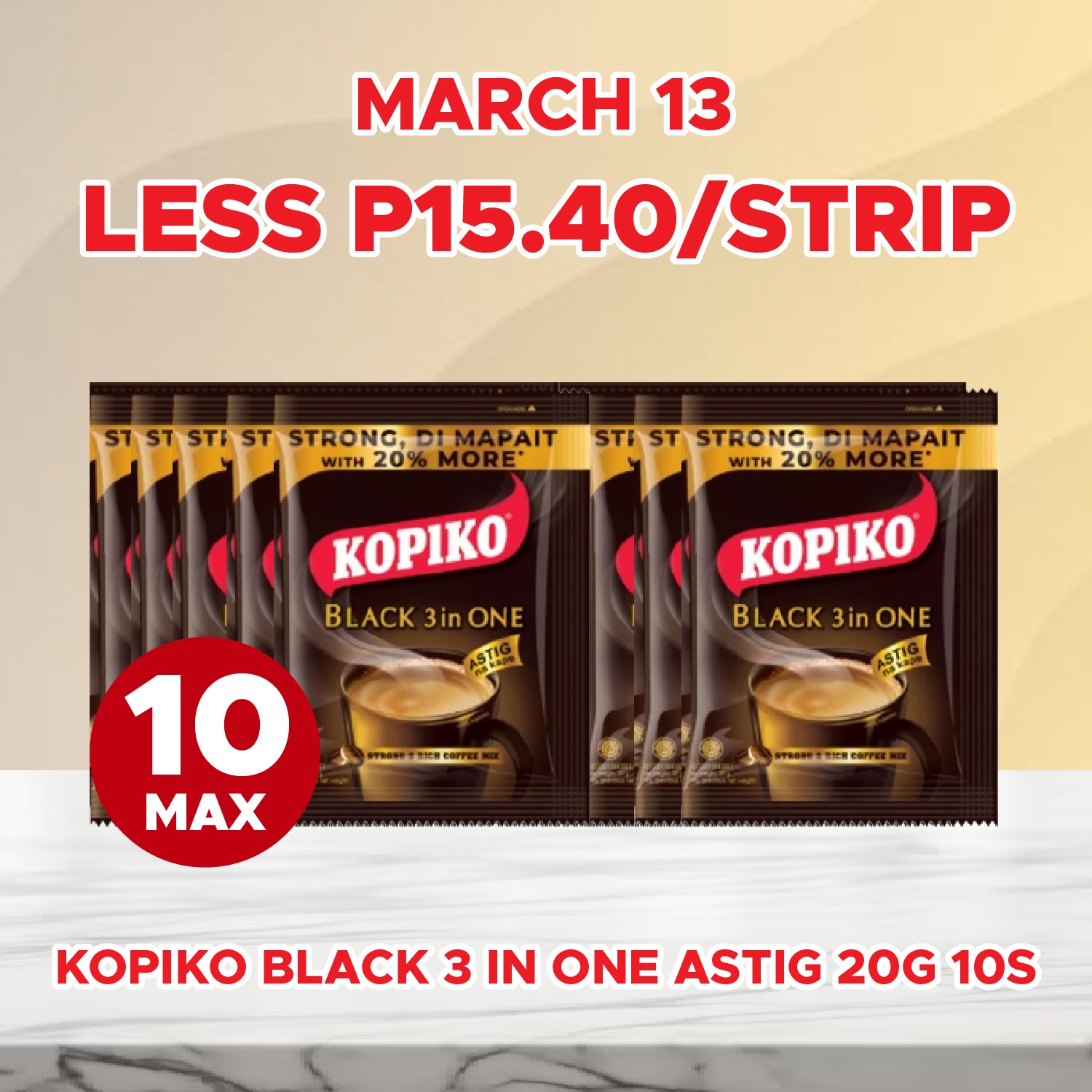 Sale! KOPIKO BLACK 3 IN ONE ASTIG 20G 10S LESS P15.40/STRIP You can purchase this product till 2026-03-13 ₱77.00 ₱61.60 61 in stock - KOPIKO BLACK 3 IN ONE ASTIG 20G 10S LESS P15.40/STRIP quantity + Add to cart SKU: S-8996001410226 Categories: 2-DAY SALE, SAVE UP TO P283.00 Related products Sale! DOVE SHAMPOO RESTORATIVE OIL NOURISHING CARE 12ML 6S LESS P6.75/STRIP Available till 2026-03-13 ₱33.00 ₱26.25 Add to cart Sale! NURTURE BABY WIPES POWDER SCENT 30S LESS P10.00/PC Available till 2026-03-13 ₱47.00 ₱37.00 Add to cart Sale! PH CARE NATURAL PROTECTION 50ML LESS 50% Available till 2026-03-13 ₱54.00 ₱27.00 Add to cart Sale! SELECTA SUPRME COOKIES & CREAM 1.25L SELECTA 3IN1 UBE MANGO AVOCADO 750ML (1:1) P95.00 Available till 2026-03-13 ₱350.00 ₱255.00 Add to cart