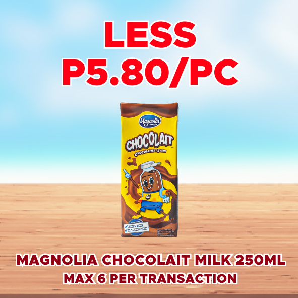 Sale! MAGNOLIA CHOCOLAIT MILK 250ML LLESS P5.80/PC This product will be available on 2026-04-30 ₱29.00 ₱23.20 SKU: S-4805358603059 Categories: 1-DAY SALE, SAVE UP TO P72.00 Related products Sale! ARIEL LIQUID WITH DOWNY FLORAL PASSION 54G 6S LESS P18.00/STRIP Available on 2026-04-30 ₱90.00 ₱72.00 Read more Sale! SHIELD BATH SOAP WHITE 55G LESS P3.00/PC Available on 2026-04-30 ₱14.00 ₱11.00 Read more Sale! SURF POWDER ACTIVE CLEAN SUN FRESH 65G 6S LESS P8.10/STRIP Available on 2026-04-30 ₱40.50 ₱32.40 Read more Sale! SAFEGUARD PURE WHITE 115G 3S LESS P42.00/PC Available on 2026-04-30 ₱141.00 ₱99.00 Read more