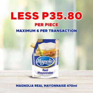 Sale! PALMOLIVE ENERGIZING GLOW 55G LESS P3.10/PC This product will be available on 2025-10-30 ₱15.50 ₱12.40 SKU: S-8850006492291 Categories: 1-DAY SALE, SAVE UP TO P62.00 Related products Sale! NISSIN BINGO DOUBLE-CHOCO 28G 10S FREE LUCKY ME NOODLES BEEF 55G Available on 2025-10-30 ₱68.75 ₱60.00 Read more Sale! NISSIN BINGO ORANGE 28G 10S FREE LUCKY ME NOODLES CHICKEN 55G Available on 2025-10-30 ₱68.75 ₱60.00 Read more Sale! MAGNOLIA CHICKEN SPREAD 220ML LESS P18.40/PC Available on 2025-10-30 ₱92.00 ₱73.60 Read more Sale! MAGNOLIA REAL MAYONNAISE 470ML LESS P35.80/PC Available on 2025-10-30 ₱179.00 ₱143.20 Read more
