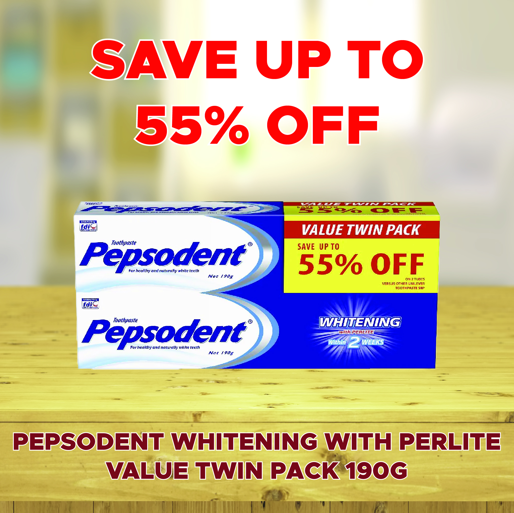 Pepsodent Whitening with Perlite Value Twin Pack 190g Save up to 55% Off₱129.00 3 in stock - Pepsodent Whitening with Perlite Value Twin Pack 190g Save up to 55% Off quantity + Add to cart SKU: 8999999028039 Category: Value Plus Related products Kwik Multi Insect Killer Water-Based 500ml Save P26.00 ₱246.00 Add to cart Safeguard Bar Soap Lemon Fresh 60g Buy 6 Get 1 Free ₱124.50 Add to cart Ambi Pur Room Fresh Romantic Rose 180g Buy 2 Save up to P59.00 ₱264.00 Add to cart Goya Cream White Chocolate 30g 2+1 ₱47.00 Add to cart