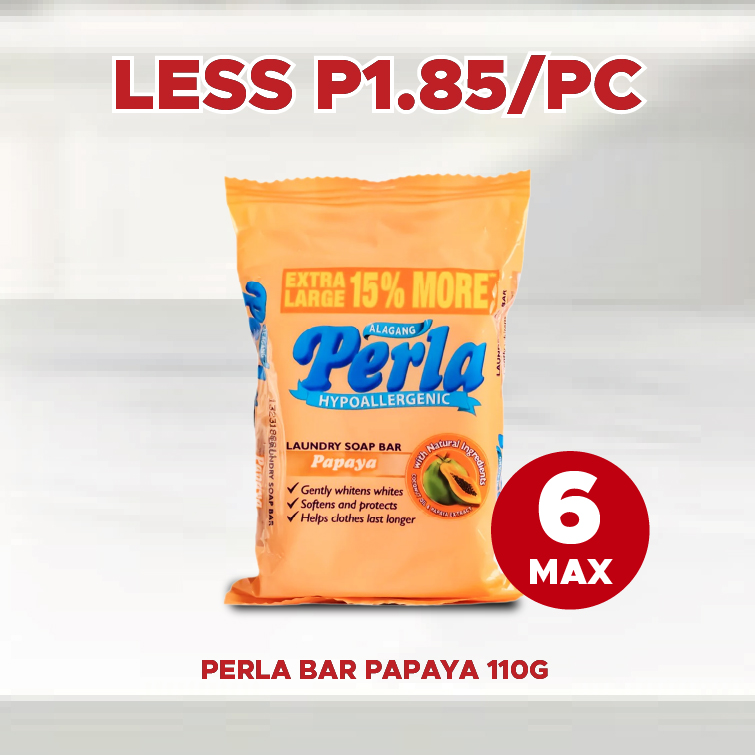 Sale! PERLA BAR PAPAYA 110G LESS P1.85/PC This product will be available on 2026-04-30 ₱18.50 ₱16.65 SKU: S-411313 Categories: 1-DAY SALE, SAVE UP TO P72.00 Related products Sale! SHIELD BATH SOAP PINK 55G LESS P3.00/PC Available on 2026-04-30 ₱14.00 ₱11.00 Read more Sale! HEAD & SHOULDER SHAMPOO COOL MENTHOL 12ML 6S LESS P8.90/STRIP Available on 2026-04-30 ₱44.40 ₱35.50 Read more Sale! JOY DISHWASHING LIQUID LEMON 140ML LESS P12.00/PC Available on 2026-04-30 ₱43.50 ₱31.50 Read more Sale! PRIDE KOREAN STRAWBERRY BLOOM POWDER 40G 6S LESS P5.40/STRIP Available on 2026-04-30 ₱27.00 ₱21.60 Read more