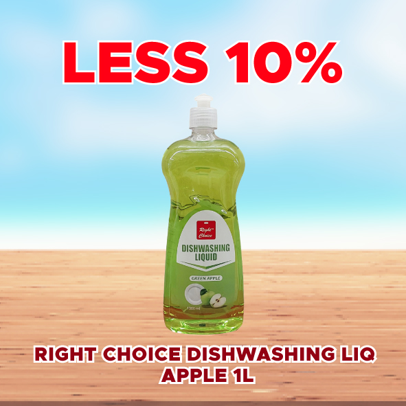 Sale! RIGHT CHOICE DISHWASHING LIQUID APPLE 1L LESS 10% This product will be available on 2026-04-30 ₱52.00 ₱46.80 SKU: S-393543 Categories: 1-DAY SALE, SAVE UP TO 70% Related products Sale! SMART DISHWASHING PASTE KALAMANSI 200G LESS P4.60/PC Available on 2026-04-30 ₱23.00 ₱18.40 Read more Sale! SURF BAR ACTIVE CLEAN KALAMANSI 360G LESS P4.50/PC Available on 2026-04-30 ₱22.50 ₱18.00 Read more Sale! SURF POWDER ACTIVE CLEAN BLOSSOM FRESH 74G 6S LESS P9.75/STRIP Available on 2026-04-30 ₱48.60 ₱38.85 Read more Sale! PANTENE CONDITIONER BIOTIN HAIR FALL CONTROL 150ML LESS P50.00/PC Available on 2026-04-30 ₱166.00 ₱116.00 Read more