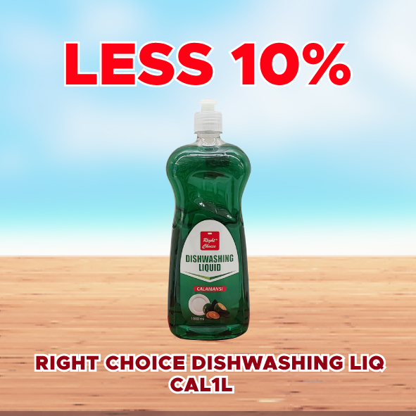 Sale! RIGHT CHOICE DISHWASHING LIQUID CALAMANSI 1L LESS 10% This product will be available on 2026-04-30 ₱52.00 ₱46.80 SKU: S-393542 Categories: 1-DAY SALE, SAVE UP TO 70% Related products Sale! SMART DISHWASHING PASTE LEMON 200GLESS P4.60/PC Available on 2026-04-30 ₱23.00 ₱18.40 Read more Sale! CREAM SILK KERATIN DAMAGE REPAIR 18ML 6S LESS P8.40/STRIP Available on 2026-04-30 ₱42.00 ₱33.60 Read more Sale! PRIDE KOREAN STRAWBERRY BLOOM POWDER 40G 6S LESS P5.40/STRIP Available on 2026-04-30 ₱27.00 ₱21.60 Read more Sale! SHIELD BATH SOAP WHITE 55G LESS P3.00/PC Available on 2026-04-30 ₱14.00 ₱11.00 Read more