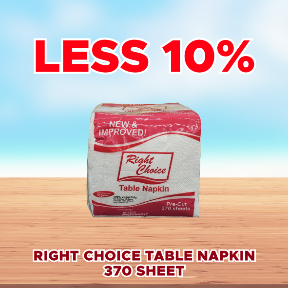 Sale! RIGHT CHOICE TABLE NAPKIN 370 SHEET LESS 10% You can purchase this product till 2025-10-30 ₱30.50 ₱27.45 5 in stock - RIGHT CHOICE TABLE NAPKIN 370 SHEET LESS 10% quantity + Add to cart SKU: S-4806502352045 Categories: 1-DAY SALE, SAVE UP TO 50% Related products Sale! 555 HOT SARDINES IN TOMATO SAUCE 155G LESS P4.65/PC Available till 2025-10-30 ₱23.25 ₱18.60 Add to cart Sale! MAGNOLIA REAL MAYONNAISE 470ML LESS P35.80/PC Available till 2025-10-30 ₱179.00 ₱143.20 Add to cart Sale! STAR MARGARINE SWEET BLEND 100G LESS P7.40/PC Available till 2025-10-30 ₱37.00 ₱29.60 Add to cart Sale! BIODERM SOAP BLOOM 60G LESS P3.10/PC Available till 2025-10-30 ₱15.50 ₱12.40 Add to cart