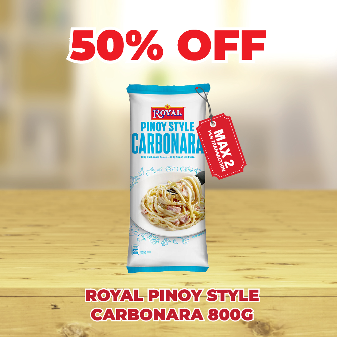 Sale! ROYAL PINOY STYLE CARBONARA 800G LESS 50% This product will be available on 2026-04-30 ₱98.00 ₱49.00 SKU: S-411156 Categories: 1-DAY SALE, SAVE UP TO 70% Related products Sale! ARIEL LIQUID WITH DOWNY FLORAL PASSION 54G 6S LESS P18.00/STRIP Available on 2026-04-30 ₱90.00 ₱72.00 Read more Sale! SAFEGUARD WHITE 65G LESS P4.20/PC Available on 2026-04-30 ₱21.00 ₱16.80 Read more Sale! LUCKY 7 CARNE NORTE 210G LESS P5.85/PC Available on 2026-04-30 ₱29.25 ₱23.40 Read more Sale! HEAD & SHOULDER SHAMPOO COOL MENTHOL 12ML 6S LESS P8.90/STRIP Available on 2026-04-30 ₱44.40 ₱35.50 Read more