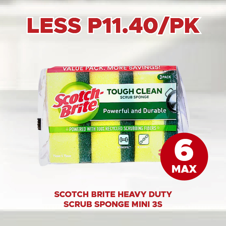 Sale! SCOTCH BRITE HEAVY DUTY SCRUB SPONGE MINI 3S LESS P11.40/PK This product will be available on 2026-04-30 ₱57.00 ₱45.60 SKU: S-4800314093813 Categories: 1-DAY SALE, SAVE UP TO P72.00 Related products Sale! HEAD & SHOULDER SHAMPOO SMOOTH & SILKY 12ML 6S LESS P8.90/STRIP Available on 2026-04-30 ₱44.40 ₱35.50 Read more Sale! SMART DISHWASHING PASTE KALAMANSI 200G LESS P4.60/PC Available on 2026-04-30 ₱23.00 ₱18.40 Read more Sale! SURF POWDER ACTIVE CLEAN BLOSSOM FRESH 74G 6S LESS P9.75/STRIP Available on 2026-04-30 ₱48.60 ₱38.85 Read more Sale! DOWNY ANTIBAC 26ML 6S LESS P7.80/STRIP Available on 2026-04-30 ₱39.00 ₱31.20 Read more