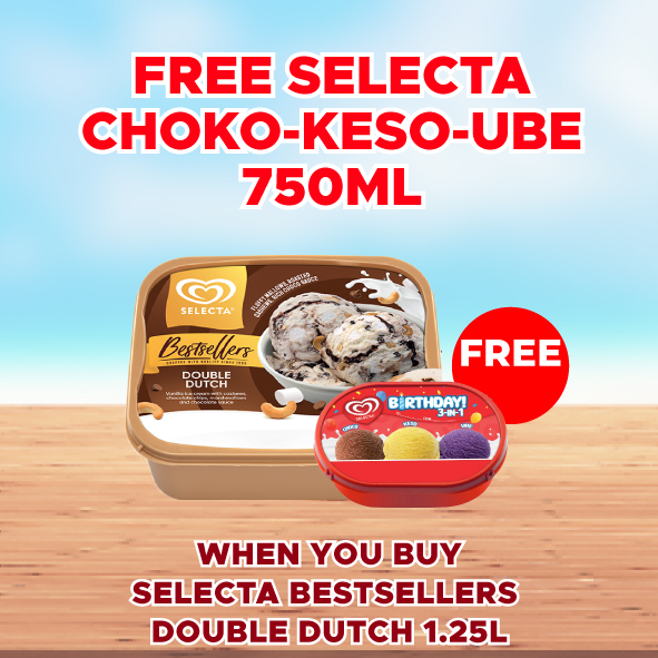 Sale! SELECTA BESTSELLERS DOUBLE DUTCH 1.25L FREE SELECTA 3N1 CHOKO-KESO-UBE 750ML This product will be available on 2026-04-30 ₱350.00 ₱255.00 SKU: S-373061 Categories: 1-DAY SALE, WITH FREE ITEM Related products Sale! SHIELD BATH SOAP WHITE 55G LESS P3.00/PC Available on 2026-04-30 ₱14.00 ₱11.00 Read more Sale! SAFEGUARD WHITE 65G LESS P4.20/PC Available on 2026-04-30 ₱21.00 ₱16.80 Read more Sale! HEAD & SHOULDER SHAMPOO SMOOTH & SILKY 12ML 6S LESS P8.90/STRIP Available on 2026-04-30 ₱44.40 ₱35.50 Read more Sale! CREAM SILK KERATIN DAMAGE REPAIR 18ML 6S LESS P8.40/STRIP Available on 2026-04-30 ₱42.00 ₱33.60 Read more
