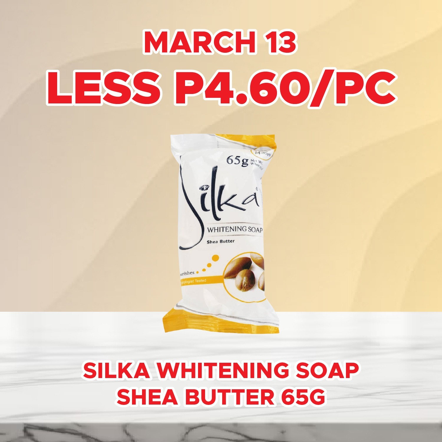 Sale! SILKA WHITENING SOAP SHEA BUTTER 65G LESS P4.60/PC You can purchase this product till 2026-03-13 ₱23.00 ₱18.40 90 in stock - SILKA WHITENING SOAP SHEA BUTTER 65G LESS P4.60/PC quantity + Add to cart SKU: S-4806507836076 Categories: 2-DAY SALE, SAVE UP TO P283.00 Related products Sale! GREEN CROSS ISOPROPHYL ALCOHOL 70% 500ML LESS P18.25/PC Available till 2026-03-13 ₱87.00 ₱68.75 Add to cart Sale! SELECTA SUPREME DOUBLE DUTCH 1.25L SELECTA 3IN1 UBE MANGO AVOCADO 750ML (1:1) P95.00 Available till 2026-03-13 ₱350.00 ₱255.00 Add to cart Sale! SEASONS FRUIT MIX 3.03KG LESS 50% Available till 2026-03-13 ₱317.00 ₱158.50 Add to cart Sale! DOVE SHAMPOO RESTORATIVE OIL NOURISHING CARE 12ML 6S LESS P6.75/STRIP Available till 2026-03-13 ₱33.00 ₱26.25 Add to cart