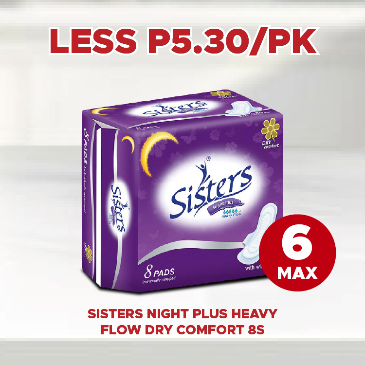 Sale! SISTERS NIGHT PLUS HEAVY FLOW DRY COMFORT 8S LESS P5.30/PK This product will be available on 2026-04-30 ₱26.50 ₱21.20 SKU: S-4806506318863 Categories: 1-DAY SALE, SAVE UP TO P72.00 Related products Sale! SHIELD BATH SOAP PINK 55G LESS P3.00/PC Available on 2026-04-30 ₱14.00 ₱11.00 Read more Sale! ARIEL WITH DOWNY FLORAL PASSION POWDER 64G 6S LESS P18.00/STRIP Available on 2026-04-30 ₱90.00 ₱72.00 Read more Sale! SURF POWDER ACTIVE CLEAN SUN FRESH 65G 6S LESS P8.10/STRIP Available on 2026-04-30 ₱40.50 ₱32.40 Read more Sale! HEAD & SHOULDER SHAMPOO COOL MENTHOL 170ML LESS P55.00/PC Available on 2026-04-30 ₱184.00 ₱129.00 Read more