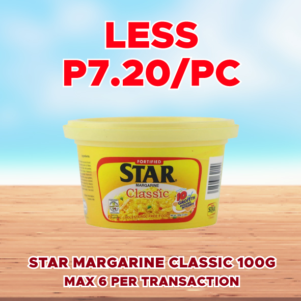 Sale! STAR MARGARINE CLASSIC 100G LESS P7.20/PC This product will be available on 2026-04-30 ₱36.00 ₱28.80 SKU: S-48036214 Categories: 1-DAY SALE, SAVE UP TO P72.00 Related products Sale! ARIEL LIQUID WITH DOWNY FLORAL PASSION 54G 6S LESS P18.00/STRIP Available on 2026-04-30 ₱90.00 ₱72.00 Read more Sale! SURF BAR ACTIVE CLEAN BLOSSOM FRESH 360G LESS P5.70/PC Available on 2026-04-30 ₱28.50 ₱22.80 Read more Sale! PANTENE CONDITIONER BIOTIN HAIR FALL CONTROL 150ML LESS P50.00/PC Available on 2026-04-30 ₱166.00 ₱116.00 Read more Sale! JOY DISHWASHING LIQUID LEMON 140ML LESS P12.00/PC Available on 2026-04-30 ₱43.50 ₱31.50 Read more