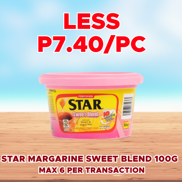 Sale! STAR MARGARINE SWEET BLEND 100G LESS P7.40/PC This product will be available on 2026-04-30 ₱37.00 ₱29.60 SKU: S-48037433 Categories: 1-DAY SALE, SAVE UP TO P72.00 Related products Sale! SURF BAR ACTIVE CLEAN KALAMANSI 360G LESS P4.50/PC Available on 2026-04-30 ₱22.50 ₱18.00 Read more Sale! ARIEL WITH DOWNY FLORAL PASSION POWDER 64G 6S LESS P18.00/STRIP Available on 2026-04-30 ₱90.00 ₱72.00 Read more Sale! SMART DISHWASHING PASTE KALAMANSI 200G LESS P4.60/PC Available on 2026-04-30 ₱23.00 ₱18.40 Read more Sale! HEAD & SHOULDER SHAMPOO SMOOTH & SILKY 12ML 6S LESS P8.90/STRIP Available on 2026-04-30 ₱44.40 ₱35.50 Read more