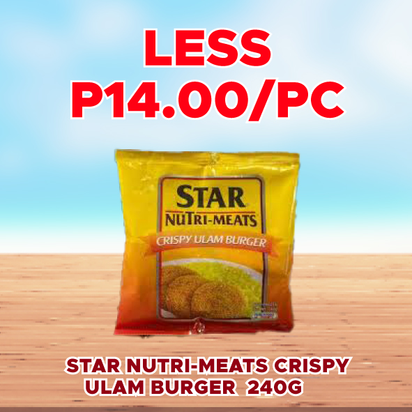 Sale! STAR NUTRI-MEATS CRISPY ULAM BURGER 240G LESS P14.00/PC This product will be available on 2026-04-30 ₱69.75 ₱55.75 SKU: S-4808887943641 Categories: 1-DAY SALE, SAVE UP TO P72.00 Related products Sale! ARIEL SUNRISE FRESH POWDER 66G 6S LESS P18.00/STRIP Available on 2026-04-30 ₱90.00 ₱72.00 Read more Sale! SHIELD BATH SOAP WHITE 55G LESS P3.00/PC Available on 2026-04-30 ₱14.00 ₱11.00 Read more Sale! PANTENE CONDITIONER BIOTIN HAIR FALL CONTROL 150ML LESS P50.00/PC Available on 2026-04-30 ₱166.00 ₱116.00 Read more Sale! JOY DISHWASHING LIQUID LEMON 140ML LESS P12.00/PC Available on 2026-04-30 ₱43.50 ₱31.50 Read more