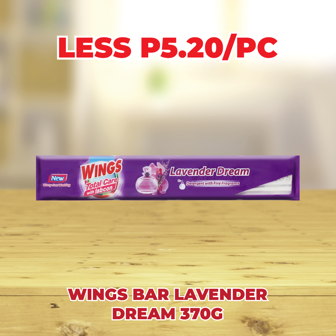 Sale! WINGS BAR LAVENDER DREAM 370G LESS P5.20/PC This product will be available on 2026-04-30 ₱26.00 ₱20.80 SKU: S-8998866612319 Categories: 1-DAY SALE, SAVE UP TO P72.00 Related products Sale! DOWNY ANTIBAC 26ML 6S LESS P7.80/STRIP Available on 2026-04-30 ₱39.00 ₱31.20 Read more Sale! PRIDE KOREAN STRAWBERRY BLOOM POWDER 40G 6S LESS P5.40/STRIP Available on 2026-04-30 ₱27.00 ₱21.60 Read more Sale! HEAD & SHOULDER SHAMPOO COOL MENTHOL 12ML 6S LESS P8.90/STRIP Available on 2026-04-30 ₱44.40 ₱35.50 Read more Sale! SMART DISHWASHING PASTE KALAMANSI 200G LESS P4.60/PC Available on 2026-04-30 ₱23.00 ₱18.40 Read more