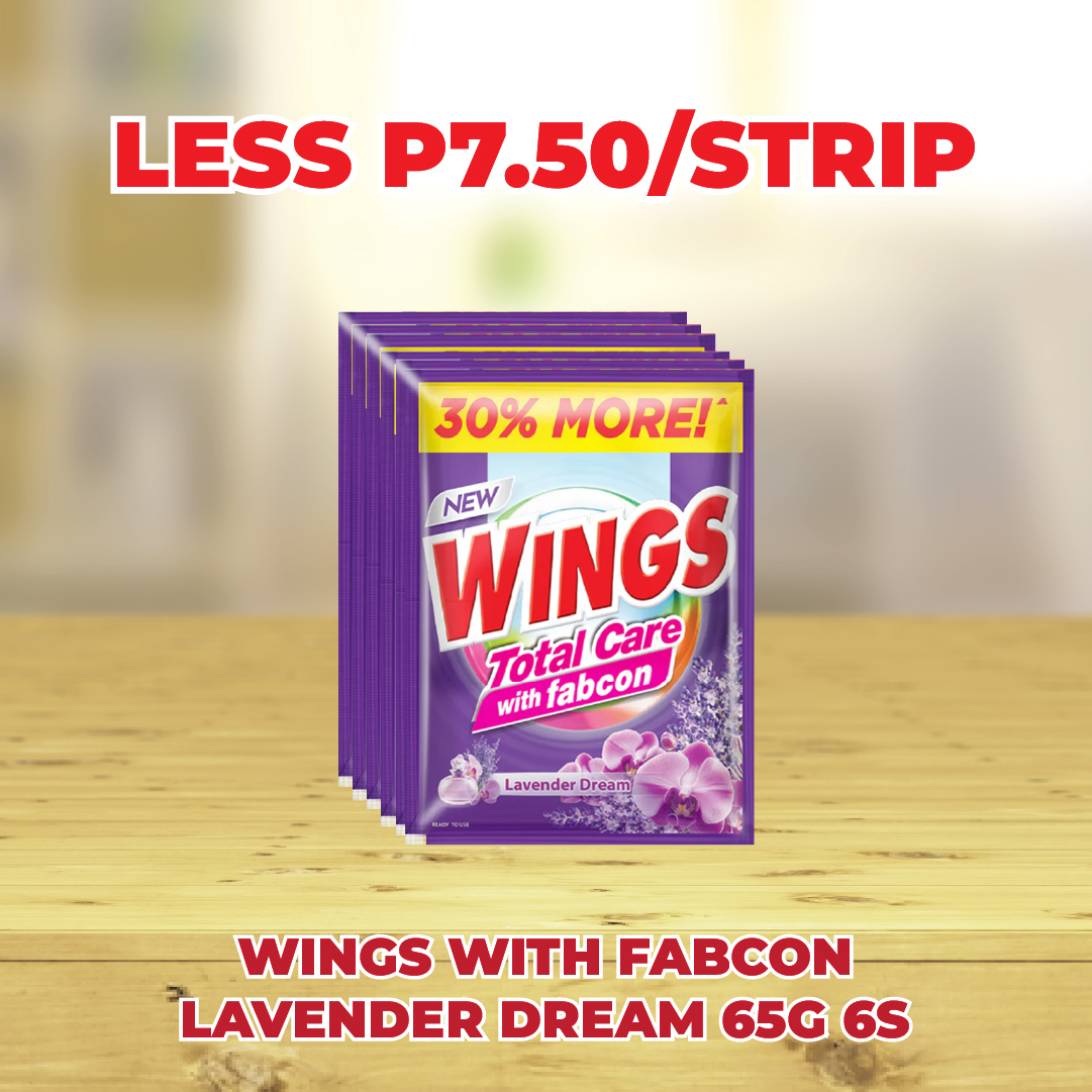 Sale! WINGS WITH FABCON LAVENDER DREAM POWDER 65G 6S LESS P7.50/STRIP This product will be available on 2026-04-30 ₱37.50 ₱30.00 SKU: S-8998866803564 Categories: 1-DAY SALE, SAVE UP TO P72.00 Related products Sale! ARIEL LIQUID WITH DOWNY FLORAL PASSION 54G 6S LESS P18.00/STRIP Available on 2026-04-30 ₱90.00 ₱72.00 Read more Sale! SURF BAR ACTIVE CLEAN BLOSSOM FRESH 360G LESS P5.70/PC Available on 2026-04-30 ₱28.50 ₱22.80 Read more Sale! SURF POWDER ACTIVE CLEAN BLOSSOM FRESH 74G 6S LESS P9.75/STRIP Available on 2026-04-30 ₱48.60 ₱38.85 Read more Sale! CREAM SILK KERATIN REBOND STRAIGHT 18ML 6S LESS P8.40/STRIP Available on 2026-04-30 ₱42.00 ₱33.60 Read more